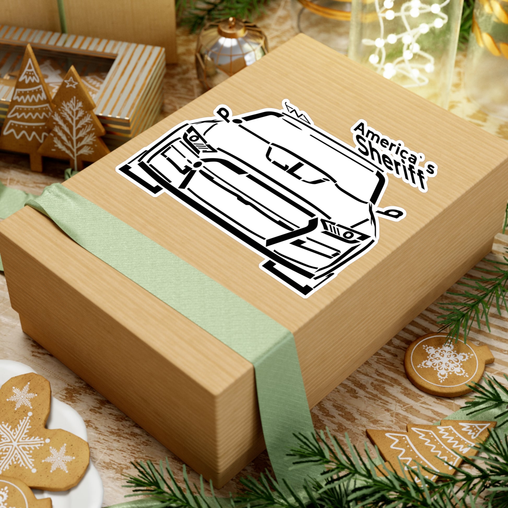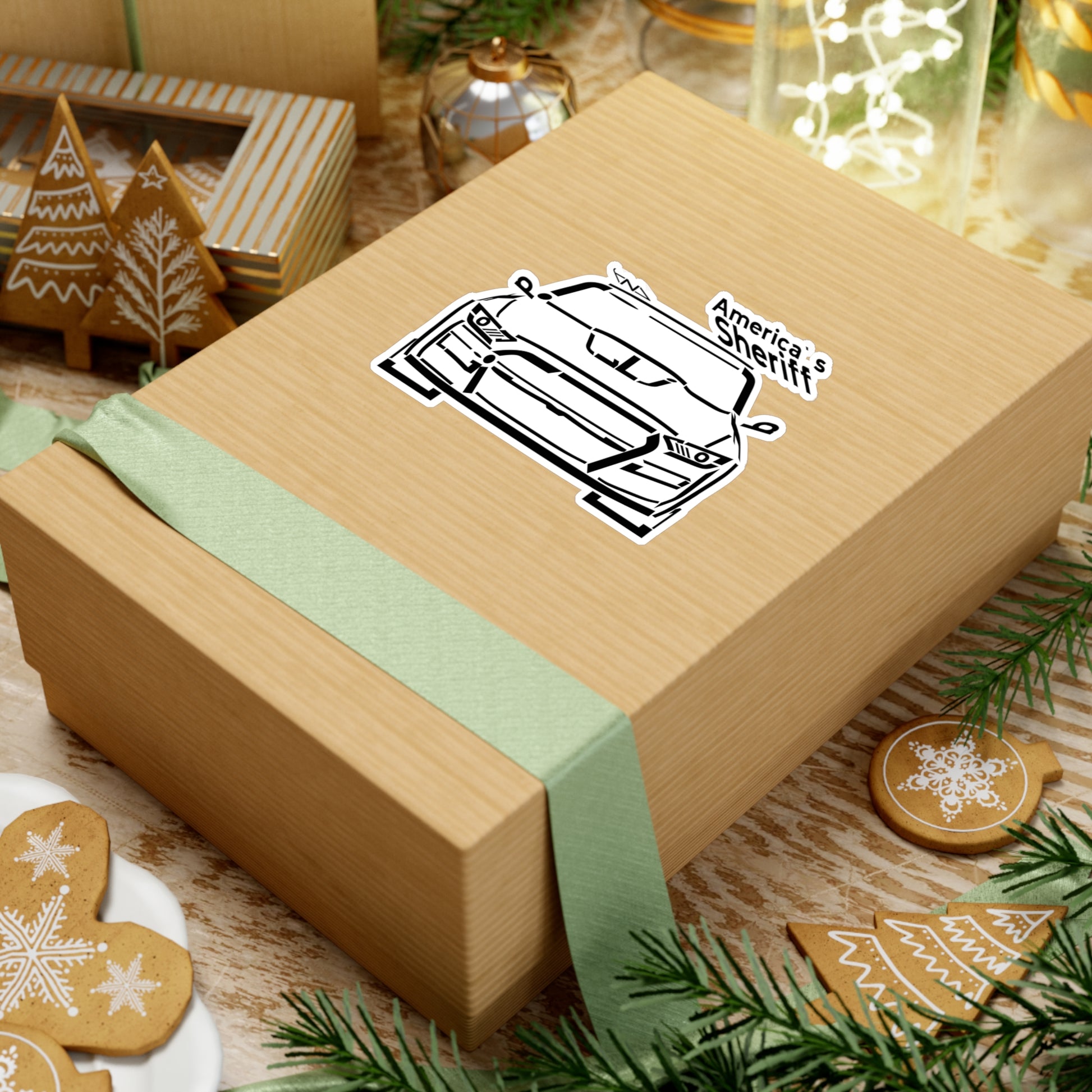 Make a bold statement with this front-facing vinyl sticker design, titled America's Sheriff.